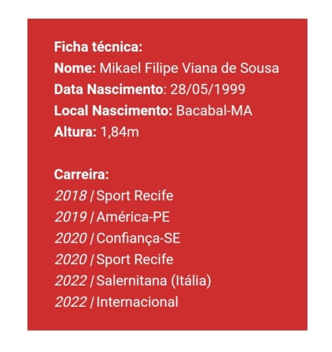 O Sport Club Internacional concluiu as negociações para anunciar a contratação do atacante Mikael. Ele assina contrato de empréstimo até julho de 2023.